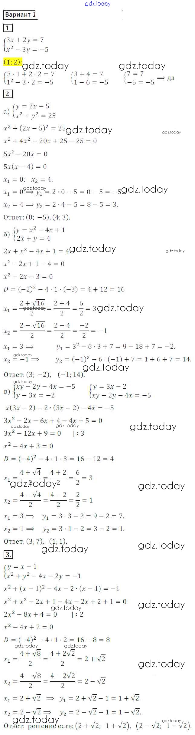 На страницах сайта gdz.today вы найдете учебный и вспомогательный материал, направленный на улучшения знаний школьной программы. ГДЗ - онлайн мир знаний СР №21. Системы уравнений первой и второй степени Решение к самостоятельным работам вариант 1 Дидактическим материалам по Алгебре для 8 класса Потапов, Шевкин Просвещение МГУ - школе 2017