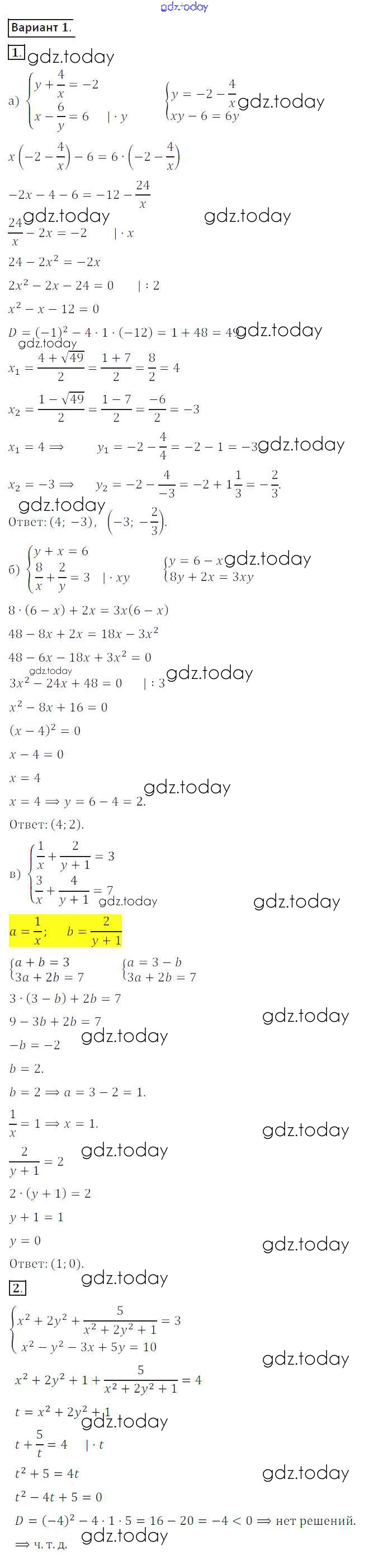 На страницах сайта gdz.today вы найдете учебный и вспомогательный материал, направленный на улучшения знаний школьной программы. ГДЗ - онлайн мир знаний СР №23. Системы рациональных уравнений Решение к самостоятельным работам вариант 1 Дидактическим материалам по Алгебре для 8 класса Потапов, Шевкин Просвещение МГУ - школе 2017
