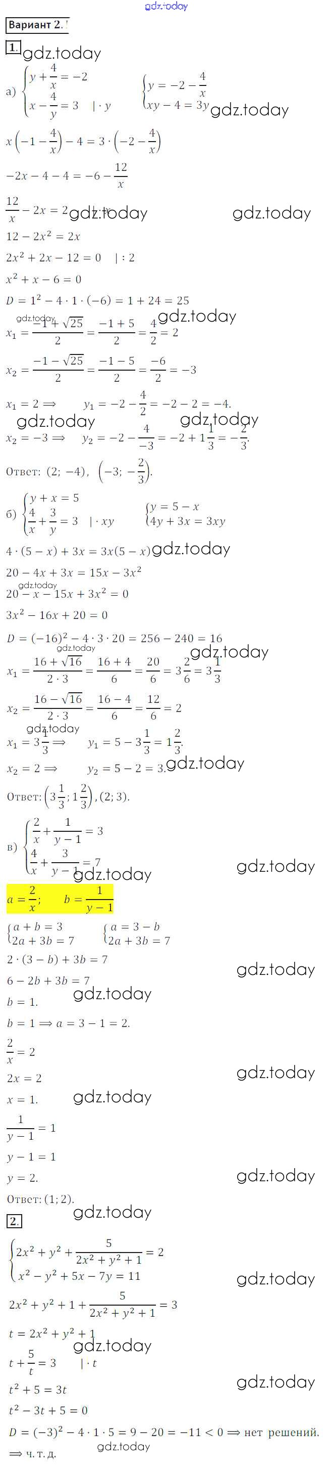На страницах сайта gdz.today вы найдете учебный и вспомогательный материал, направленный на улучшения знаний школьной программы. ГДЗ - онлайн мир знаний СР №23. Системы рациональных уравнений Решение к самостоятельным работам вариант 2 Дидактическим материалам по Алгебре для 8 класса Потапов, Шевкин Просвещение МГУ - школе 2017