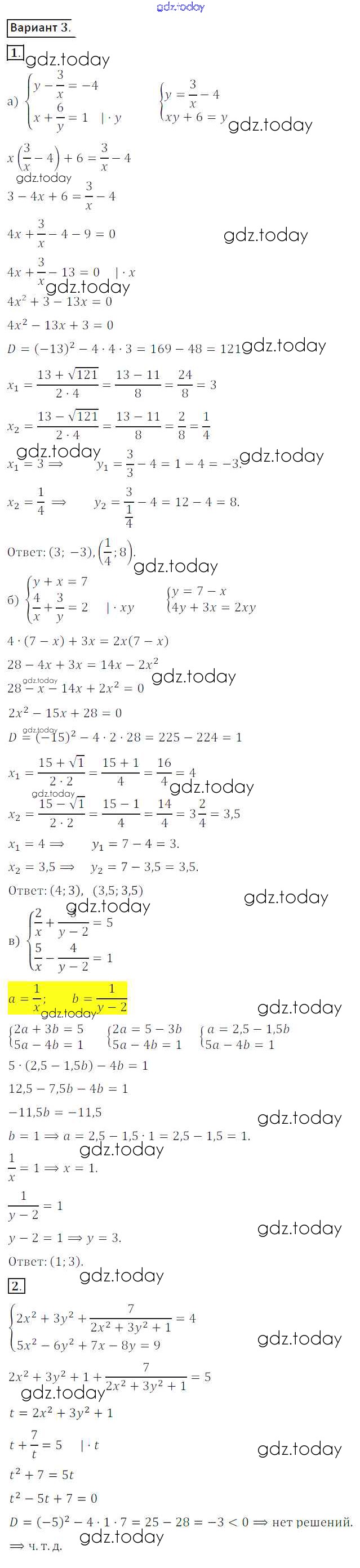 Ответы к СР №23. Системы рациональных уравнений Решение к самостоятельным работам вариант 3 Дидактическим материалам по Алгебре для 8 класса Потапов, Шевкин Просвещение МГУ - школе 2017