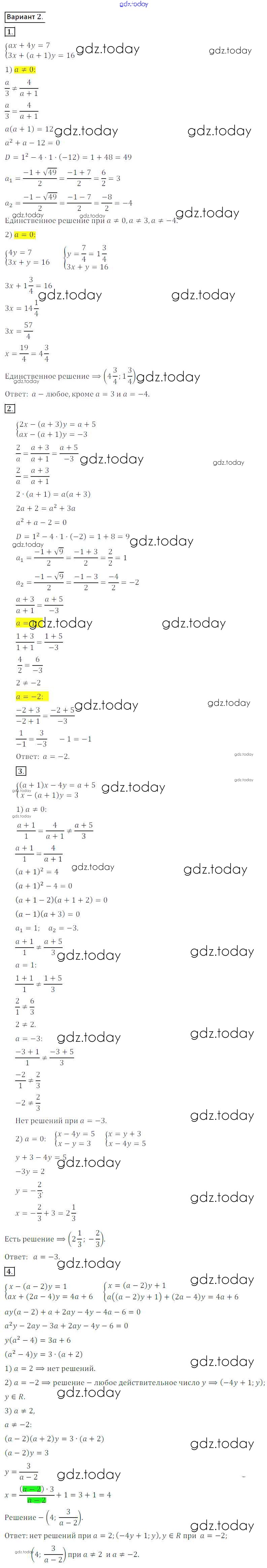 Ответы к СР №24. Системы линейных уравнений с параметром Решение к самостоятельным работам вариант 2 Дидактическим материалам по Алгебре для 8 класса Потапов, Шевкин Просвещение МГУ - школе 2017
