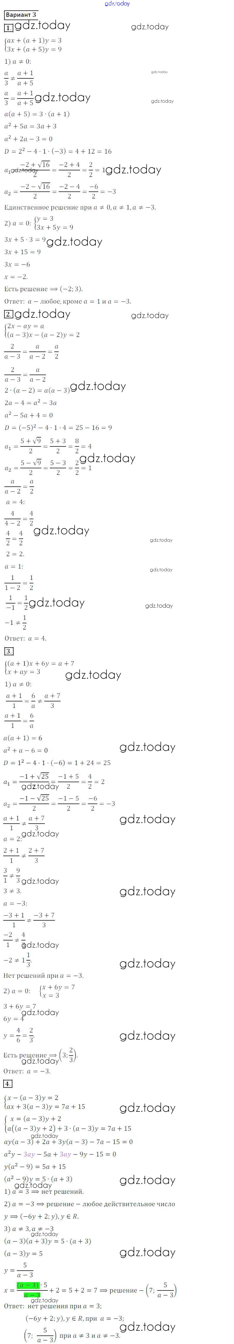 Ответы к СР №24. Системы линейных уравнений с параметром Решение к самостоятельным работам вариант 3 Дидактическим материалам по Алгебре для 8 класса Потапов, Шевкин Просвещение МГУ - школе 2017