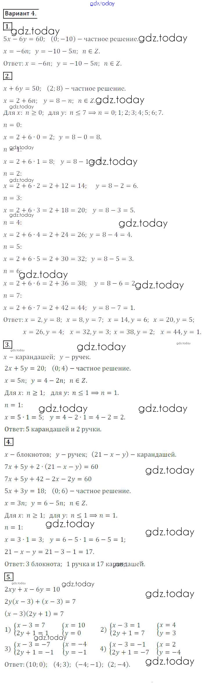 На страницах сайта gdz.today вы найдете учебный и вспомогательный материал, направленный на улучшения знаний школьной программы. ГДЗ - онлайн мир знаний СР №26. Решение уравнений в целых числах Решение к самостоятельным работам вариант 4 Дидактическим материалам по Алгебре для 8 класса Потапов, Шевкин Просвещение МГУ - школе 2017