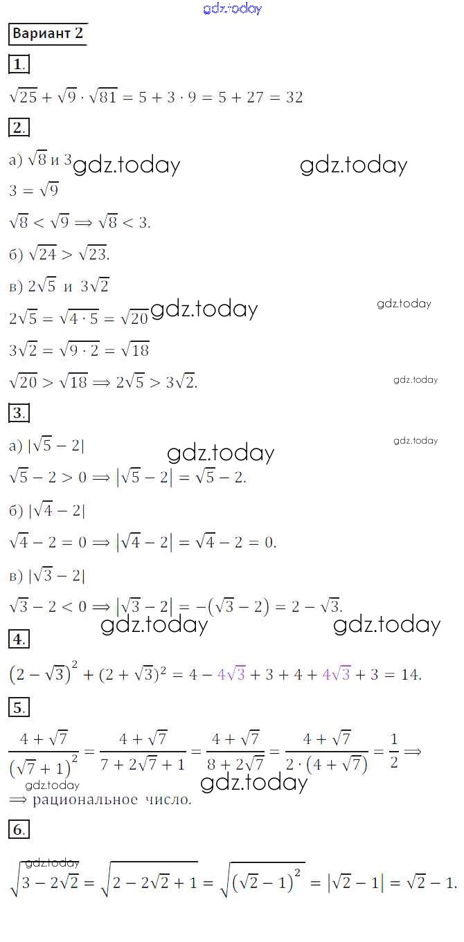 На страницах сайта gdz.today вы найдете учебный и вспомогательный материал, направленный на улучшения знаний школьной программы. ГДЗ - онлайн мир знаний СР №3. Квадратный корень из числа Решение к самостоятельным работам вариант 2 Дидактическим материалам по Алгебре для 8 класса Потапов, Шевкин Просвещение МГУ - школе 2017