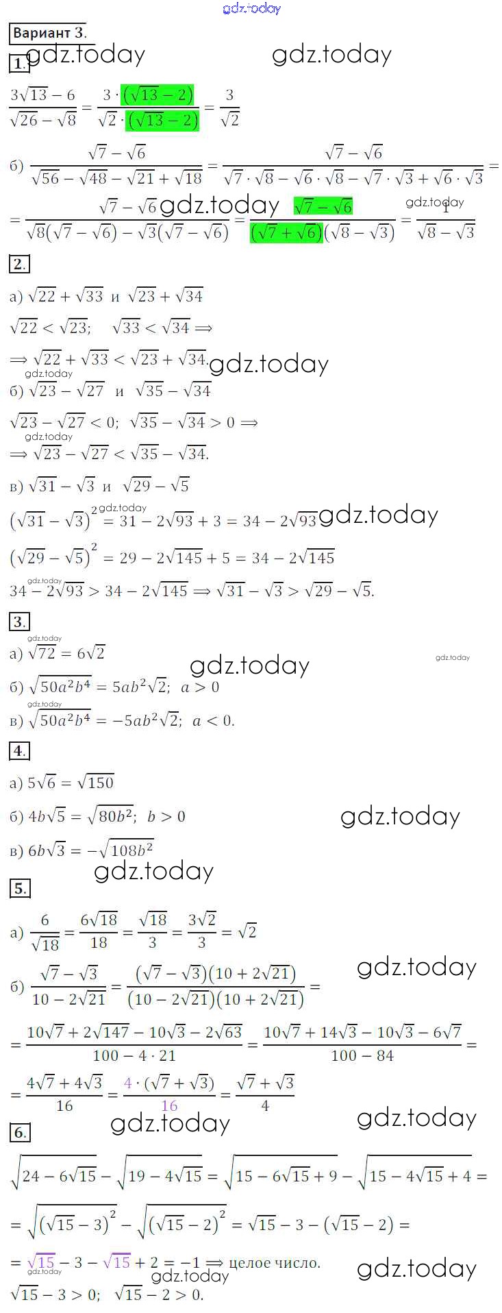 На страницах сайта gdz.today вы найдете учебный и вспомогательный материал, направленный на улучшения знаний школьной программы. ГДЗ - онлайн мир знаний СР №4. Преобразование выражений, содержащих квадратные корни Решение к самостоятельным работам вариант 3 Дидактическим материалам по Алгебре для 8 класса Потапов, Шевкин Просвещение МГУ - школе 2017