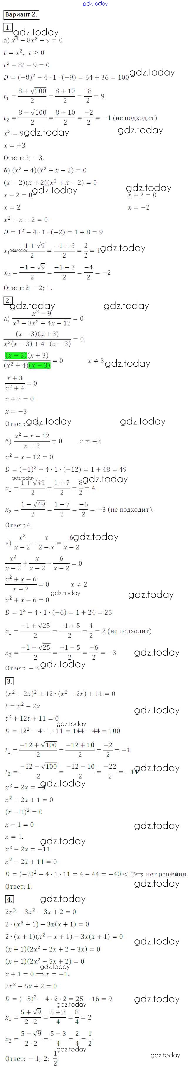 Ответы к СР №8. Рациональные уравнения Решение к самостоятельным работам вариант 2 Дидактическим материалам по Алгебре для 8 класса Потапов, Шевкин Просвещение МГУ - школе 2017