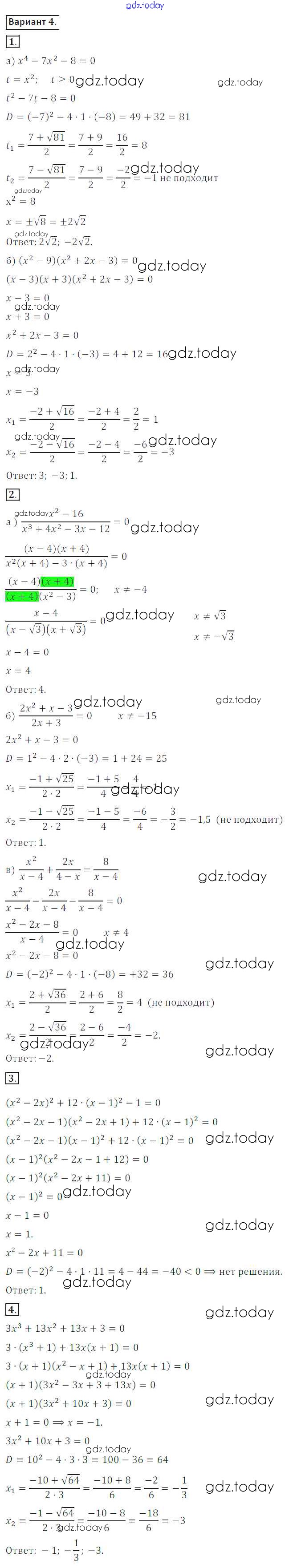 Ответы к СР №8. Рациональные уравнения Решение к самостоятельным работам вариант 4 Дидактическим материалам по Алгебре для 8 класса Потапов, Шевкин Просвещение МГУ - школе 2017