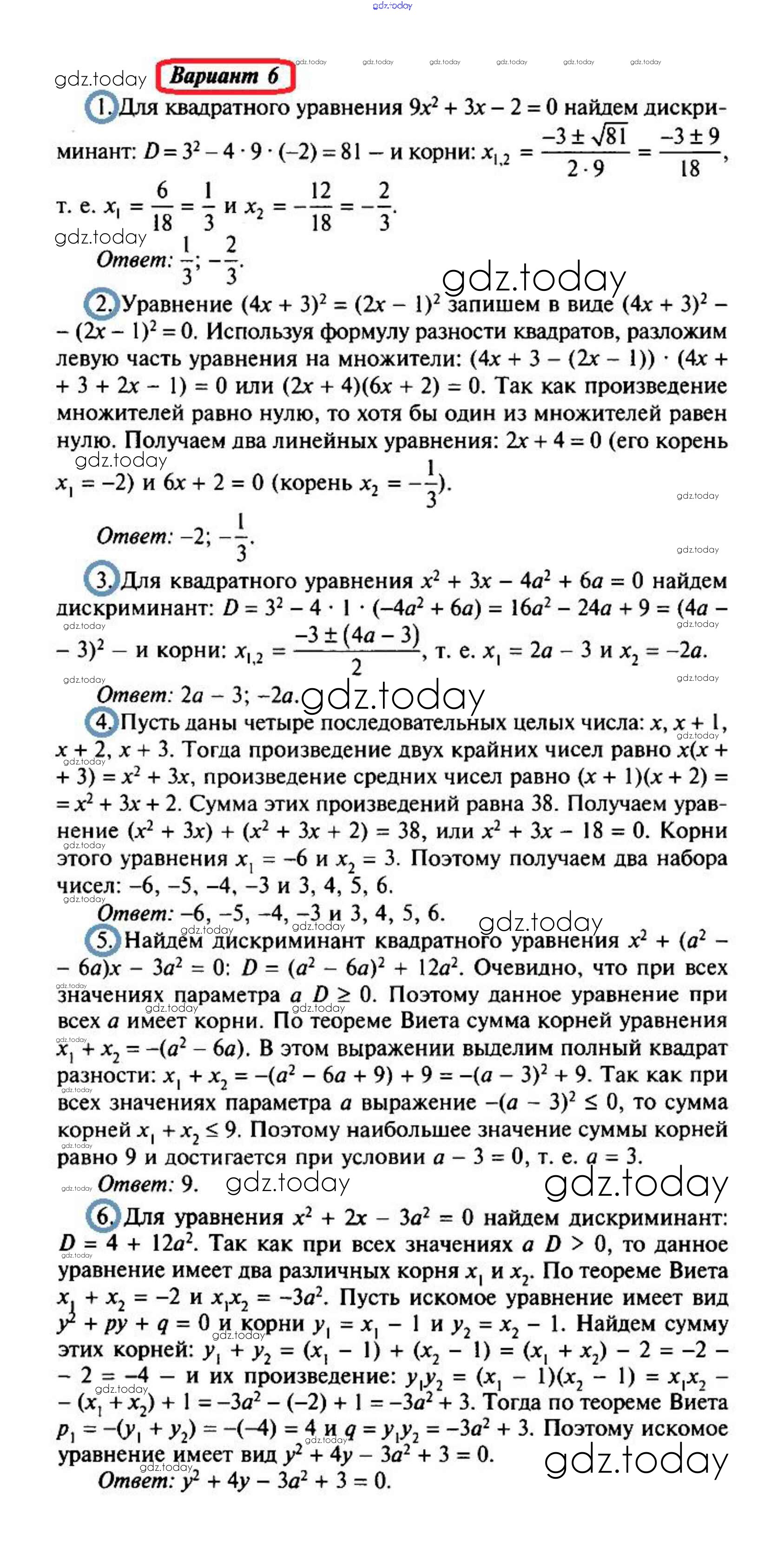 На страницах сайта gdz.today вы найдете учебный и вспомогательный материал, направленный на улучшения знаний школьной программы. ГДЗ - онлайн мир знаний Квадратные уравнения (Варианты) Решение к главе 3. Квадратные уравнения (Контрольные работы) 6 Поурочным разработкам по Алгебре для 8 класса Рурукин ВАКО УМК 2019