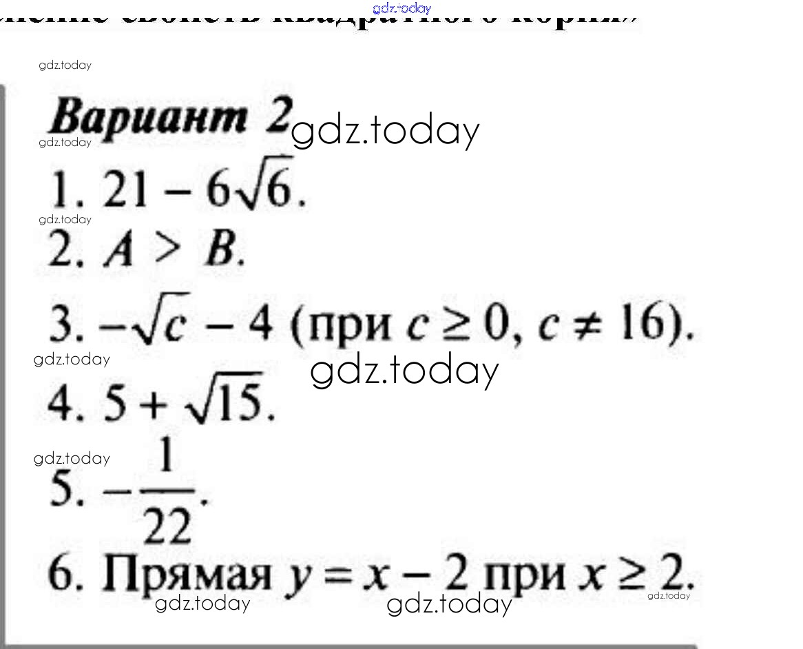 На страницах сайта gdz.today вы найдете учебный и вспомогательный материал, направленный на улучшения знаний школьной программы. ГДЗ - онлайн мир знаний Применение свойств квадратного корня (Варианты) Решение к главе 2. Квадратные корни (Контрольные работы) 2 Поурочным разработкам по Алгебре для 8 класса Рурукин ВАКО УМК 2019