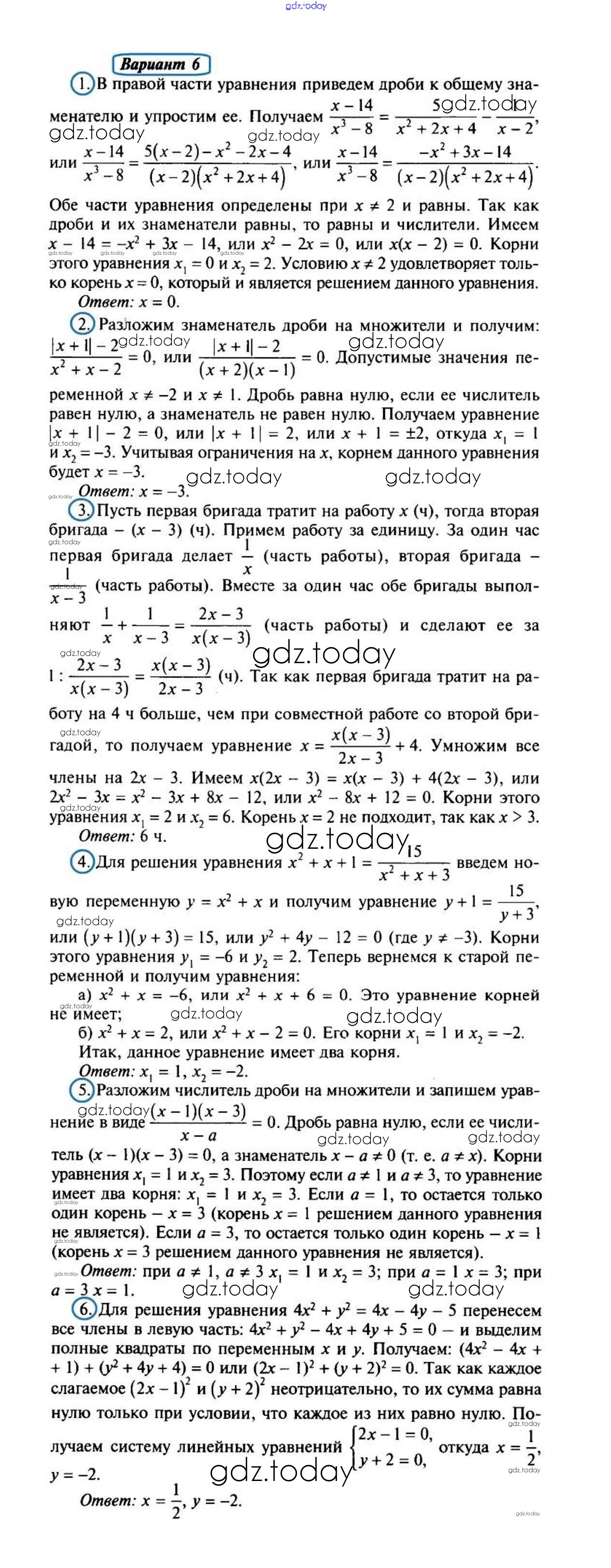 На страницах сайта gdz.today вы найдете учебный и вспомогательный материал, направленный на улучшения знаний школьной программы. ГДЗ - онлайн мир знаний Квадратные уравнения. Дробные рациональные уравнения (Варианты) Решение к главе 3. Квадратные уравнения (Контрольные работы) 6 Поурочным разработкам по Алгебре для 8 класса Рурукин ВАКО УМК 2019