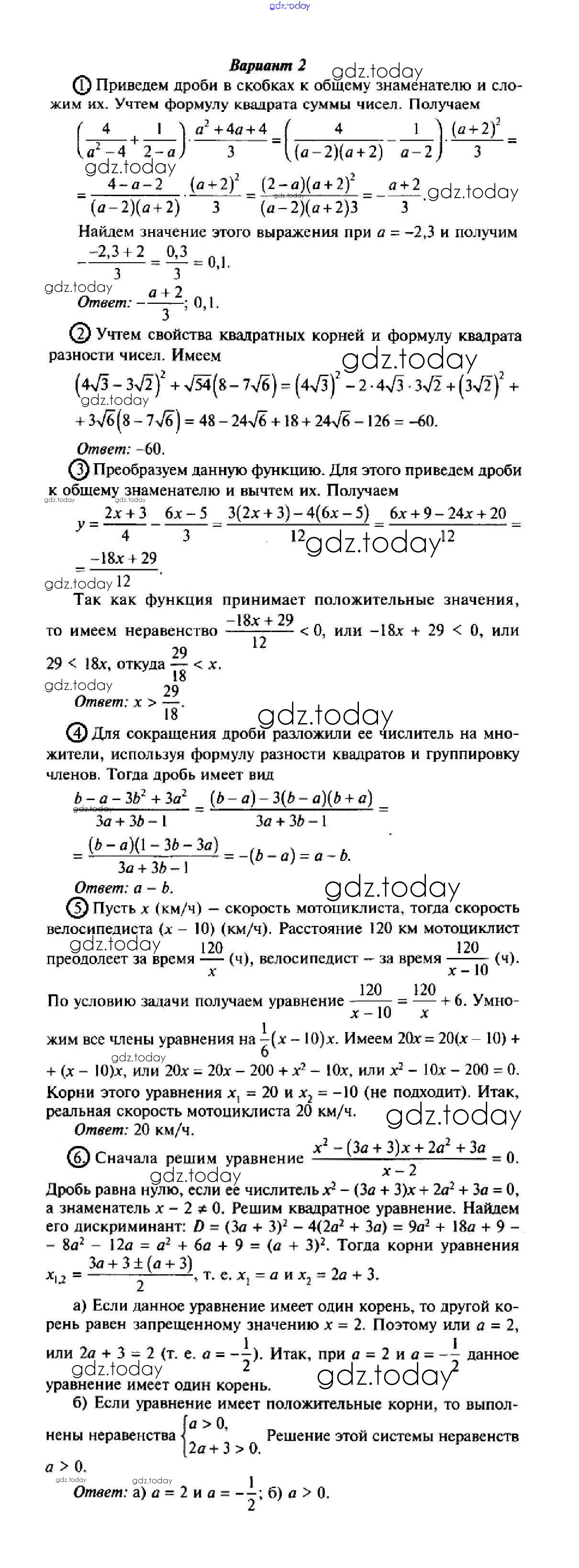 На страницах сайта gdz.today вы найдете учебный и вспомогательный материал, направленный на улучшения знаний школьной программы. ГДЗ - онлайн мир знаний Итоговая контрольная работа (Варианты) Решение к главе 5. Степень с целым показателем (Контрольные работы) 2 Поурочным разработкам по Алгебре для 8 класса Рурукин ВАКО УМК 2019