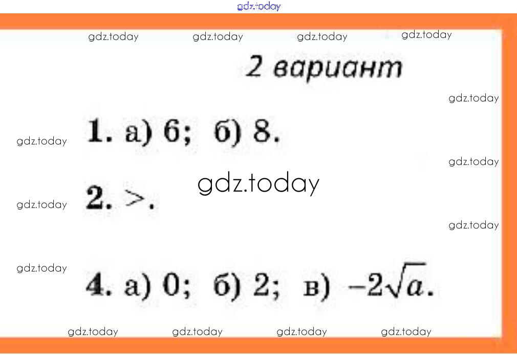 На страницах сайта gdz.today вы найдете учебный и вспомогательный материал, направленный на улучшения знаний школьной программы. ГДЗ - онлайн мир знаний Решение к контрольным работам 2. Квадратные корни (Вариант) 2 Самостоятельным и контрольным работам по Алгебре для 8 класса Карачинский СМИО Пресс 2016