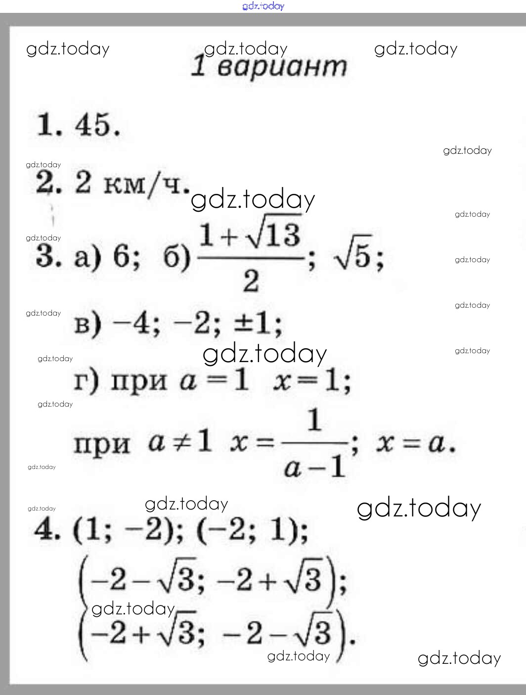 Решение к контрольным работам 2. Квадратные корни (Вариант)