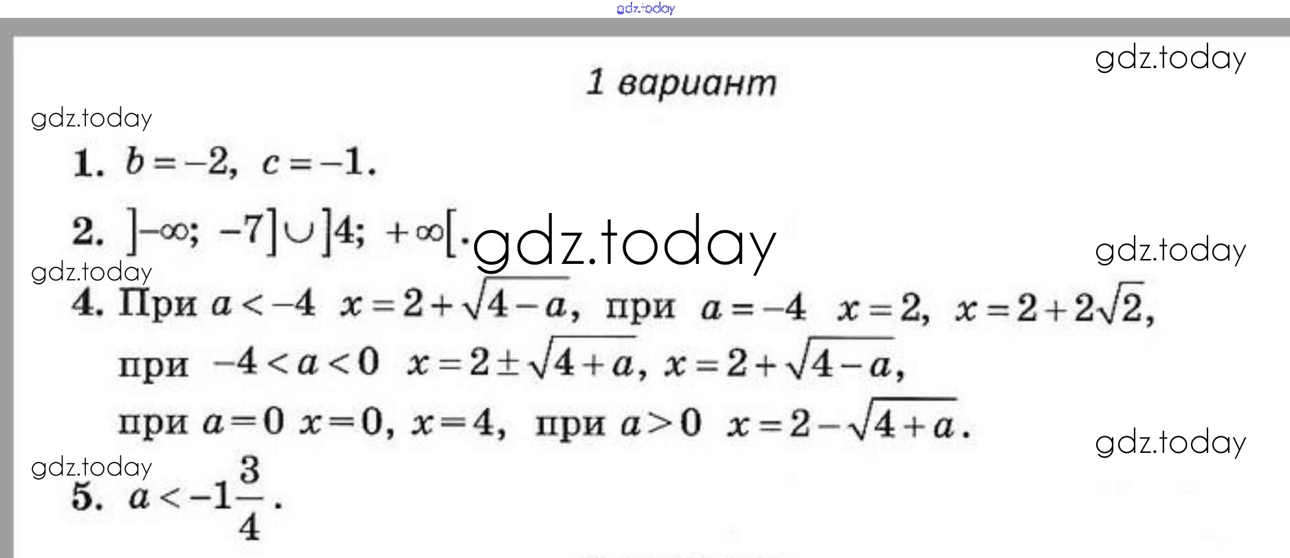 Решение к контрольным работам 3. Квадратные уравнения (Вариант)