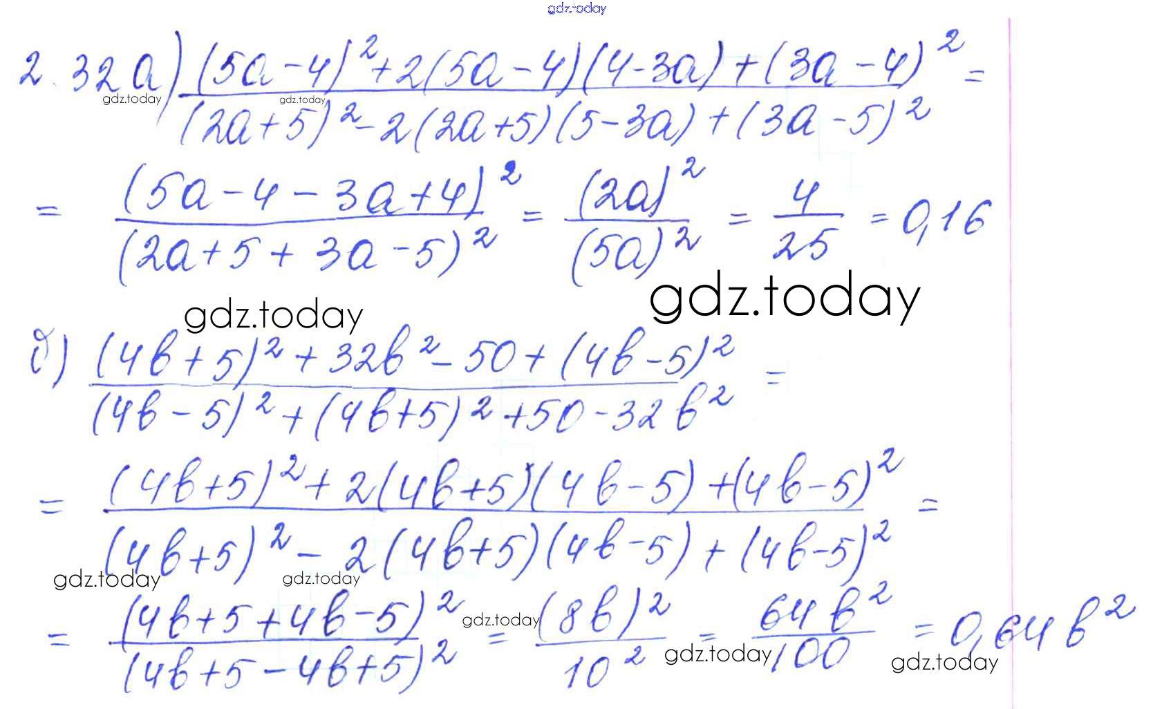 Ответы к Решение к параграфам 2. Рациональные дроби 2.32 Сборнику задач по Алгебре для 8 класса Галицкий, Гольдман Просвещение 2019