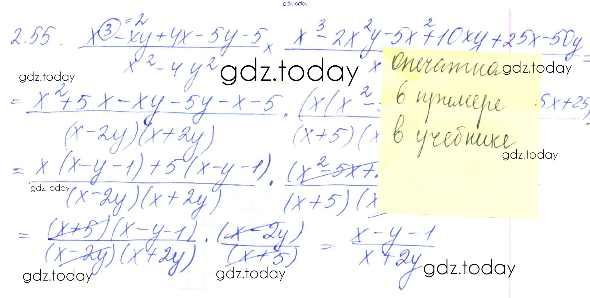 Ответы к Решение к параграфам 2. Рациональные дроби 2.55 Сборнику задач по Алгебре для 8 класса Галицкий, Гольдман Просвещение 2019