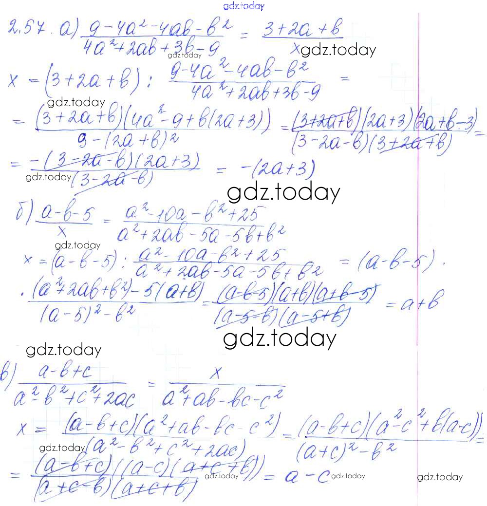 Ответы к Решение к параграфам 2. Рациональные дроби 2.57 Сборнику задач по Алгебре для 8 класса Галицкий, Гольдман Просвещение 2019