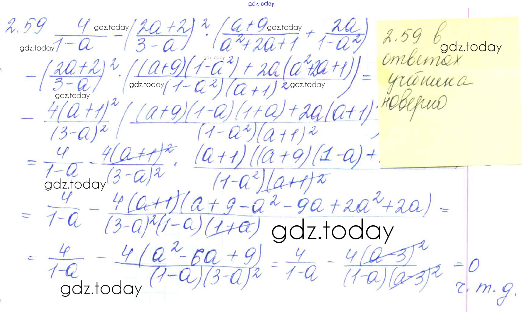 На страницах сайта gdz.today вы найдете учебный и вспомогательный материал, направленный на улучшения знаний школьной программы. ГДЗ - онлайн мир знаний Решение к параграфам 2. Рациональные дроби 2.59 Сборнику задач по Алгебре для 8 класса Галицкий, Гольдман Просвещение 2019