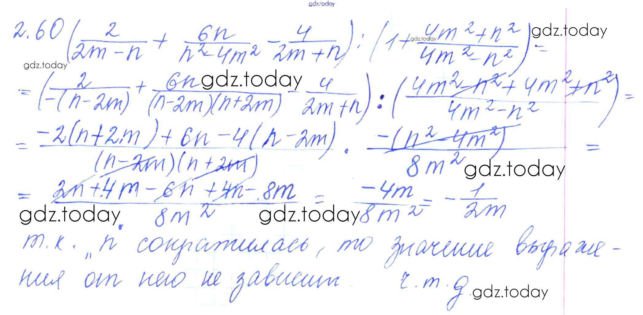 Ответы к Решение к параграфам 2. Рациональные дроби 2.60 Сборнику задач по Алгебре для 8 класса Галицкий, Гольдман Просвещение 2019