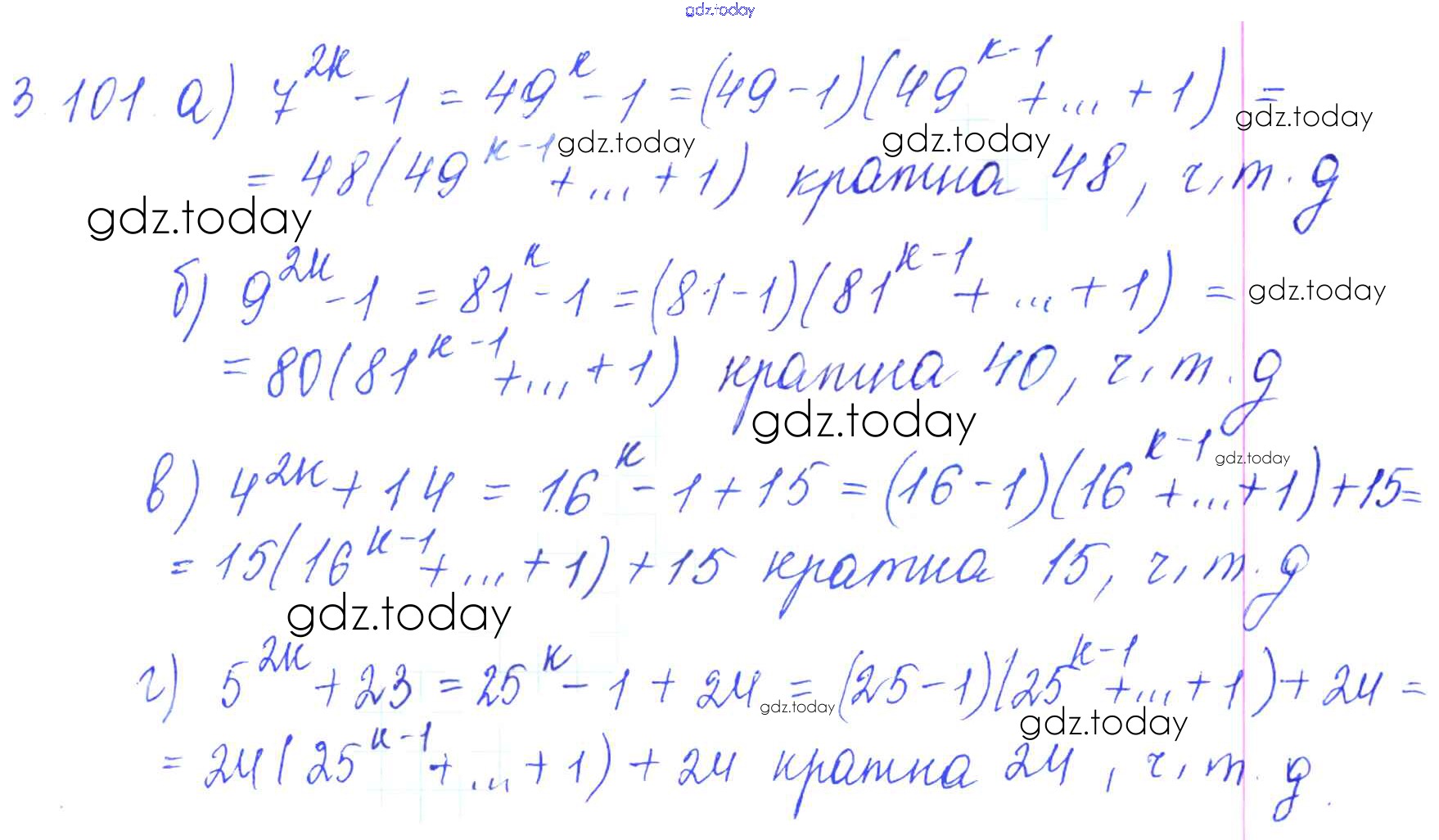 Ответы к Решение к параграфам 3. Делимость целых чисел 3.101 Сборнику задач по Алгебре для 8 класса Галицкий, Гольдман Просвещение 2019