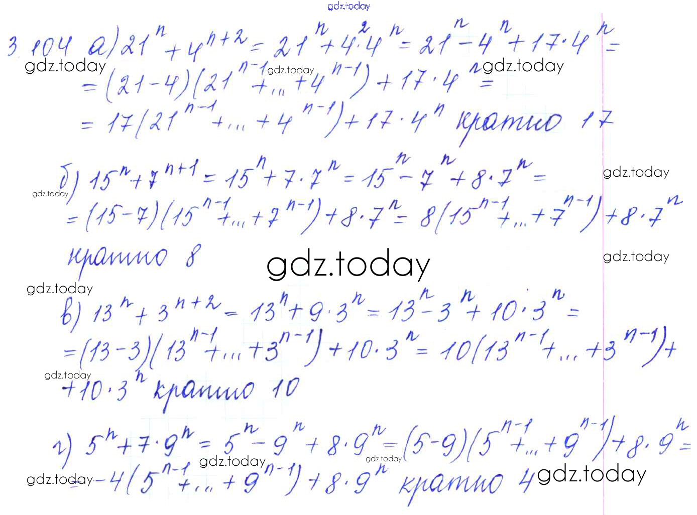 Ответы к Решение к параграфам 3. Делимость целых чисел 3.104 Сборнику задач по Алгебре для 8 класса Галицкий, Гольдман Просвещение 2019