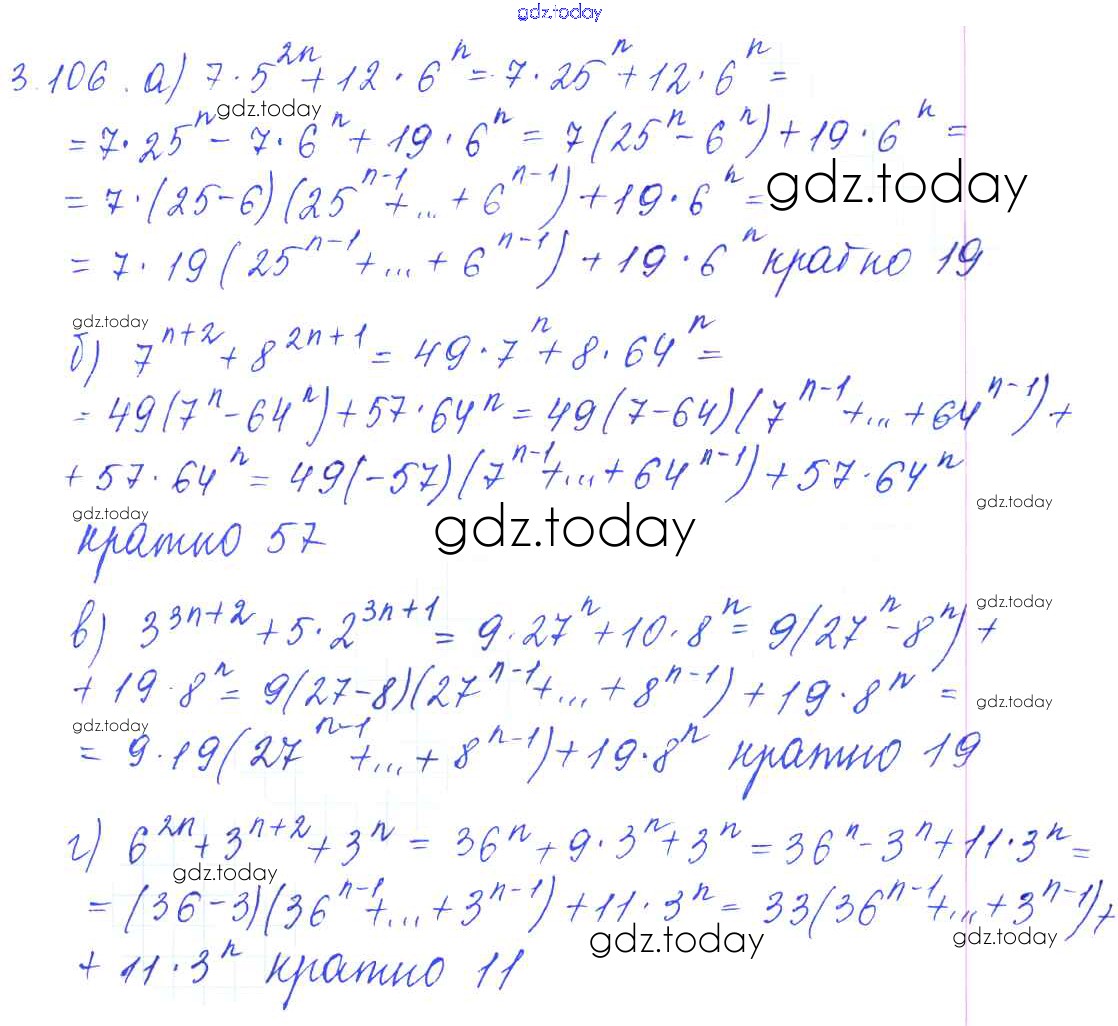 Ответы к Решение к параграфам 3. Делимость целых чисел 3.106 Сборнику задач по Алгебре для 8 класса Галицкий, Гольдман Просвещение 2019