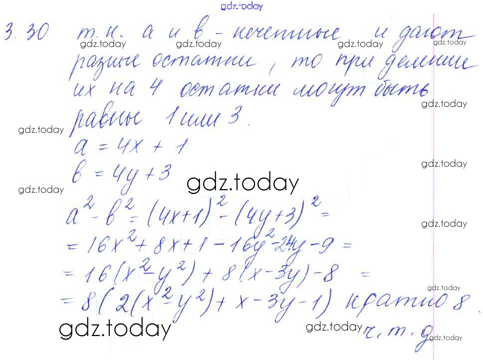 На страницах сайта gdz.today вы найдете учебный и вспомогательный материал, направленный на улучшения знаний школьной программы. ГДЗ - онлайн мир знаний Решение к параграфам 3. Делимость целых чисел 3.30 Сборнику задач по Алгебре для 8 класса Галицкий, Гольдман Просвещение 2019