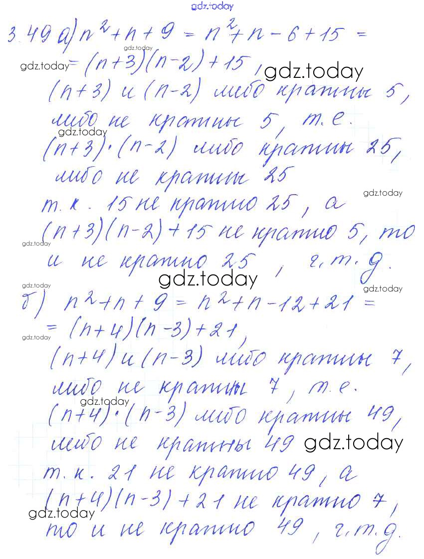 Ответы к Решение к параграфам 3. Делимость целых чисел 3.49 Сборнику задач по Алгебре для 8 класса Галицкий, Гольдман Просвещение 2019