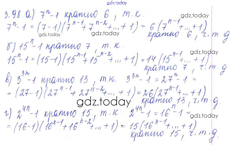 Ответы к Решение к параграфам 3. Делимость целых чисел 3.98 Сборнику задач по Алгебре для 8 класса Галицкий, Гольдман Просвещение 2019