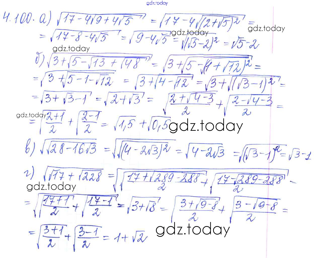 Ответы к Решение к параграфам 4. Квадратные корни 4.100 Сборнику задач по Алгебре для 8 класса Галицкий, Гольдман Просвещение 2019