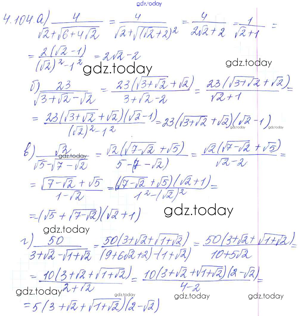 Ответы к Решение к параграфам 4. Квадратные корни 4.104 Сборнику задач по Алгебре для 8 класса Галицкий, Гольдман Просвещение 2019