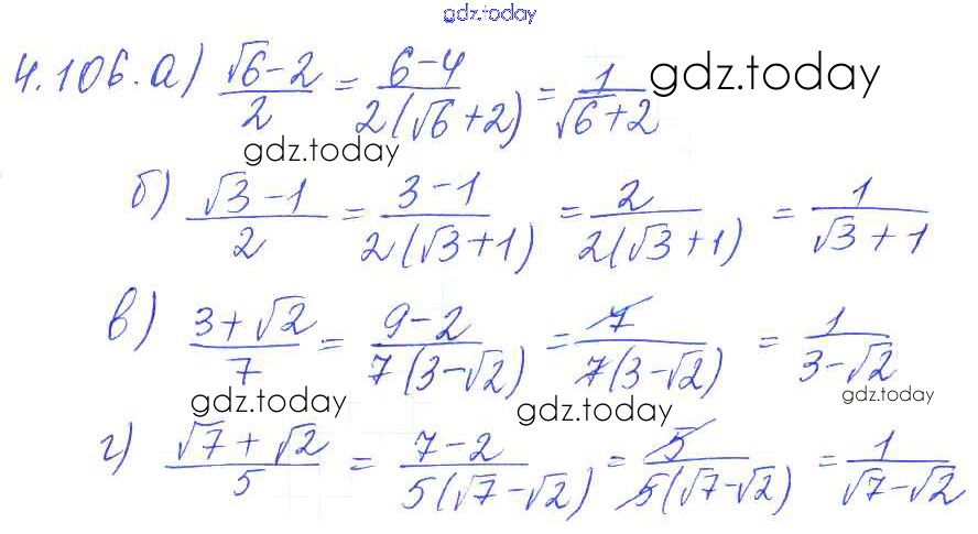 Ответы к Решение к параграфам 4. Квадратные корни 4.106 Сборнику задач по Алгебре для 8 класса Галицкий, Гольдман Просвещение 2019