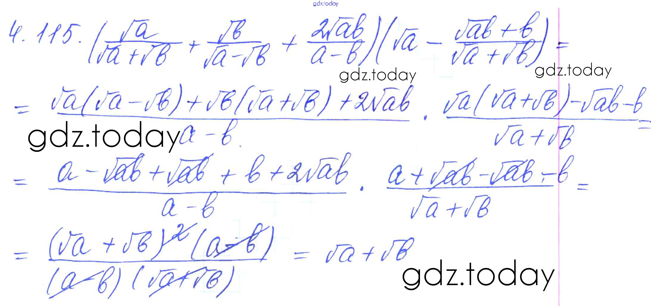 На страницах сайта gdz.today вы найдете учебный и вспомогательный материал, направленный на улучшения знаний школьной программы. ГДЗ - онлайн мир знаний Решение к параграфам 4. Квадратные корни 4.115 Сборнику задач по Алгебре для 8 класса Галицкий, Гольдман Просвещение 2019