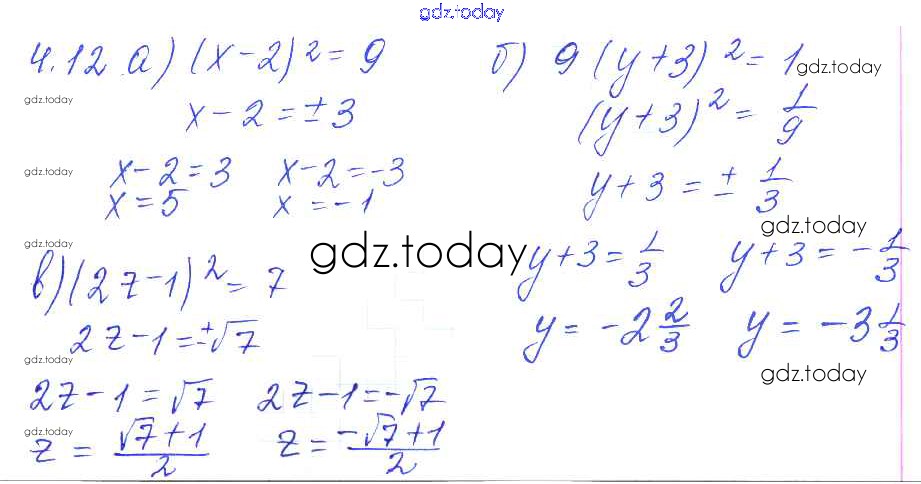 Ответы к Решение к параграфам 4. Квадратные корни 4.12 Сборнику задач по Алгебре для 8 класса Галицкий, Гольдман Просвещение 2019