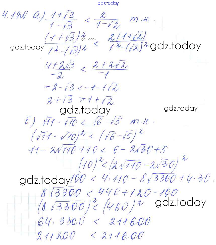 На страницах сайта gdz.today вы найдете учебный и вспомогательный материал, направленный на улучшения знаний школьной программы. ГДЗ - онлайн мир знаний Решение к параграфам 4. Квадратные корни 4.120 Сборнику задач по Алгебре для 8 класса Галицкий, Гольдман Просвещение 2019