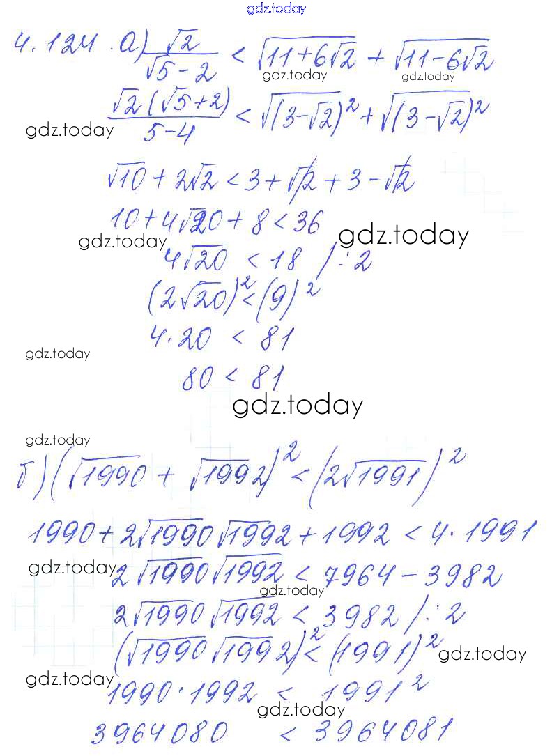 Ответы к Решение к параграфам 4. Квадратные корни 4.124 Сборнику задач по Алгебре для 8 класса Галицкий, Гольдман Просвещение 2019