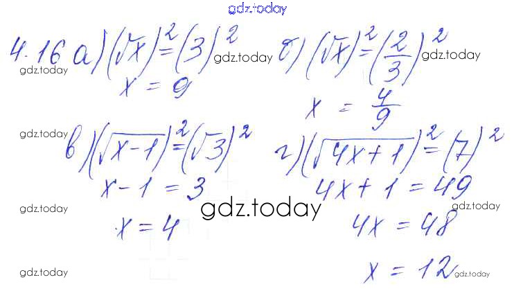 Ответы к Решение к параграфам 4. Квадратные корни 4.16 Сборнику задач по Алгебре для 8 класса Галицкий, Гольдман Просвещение 2019
