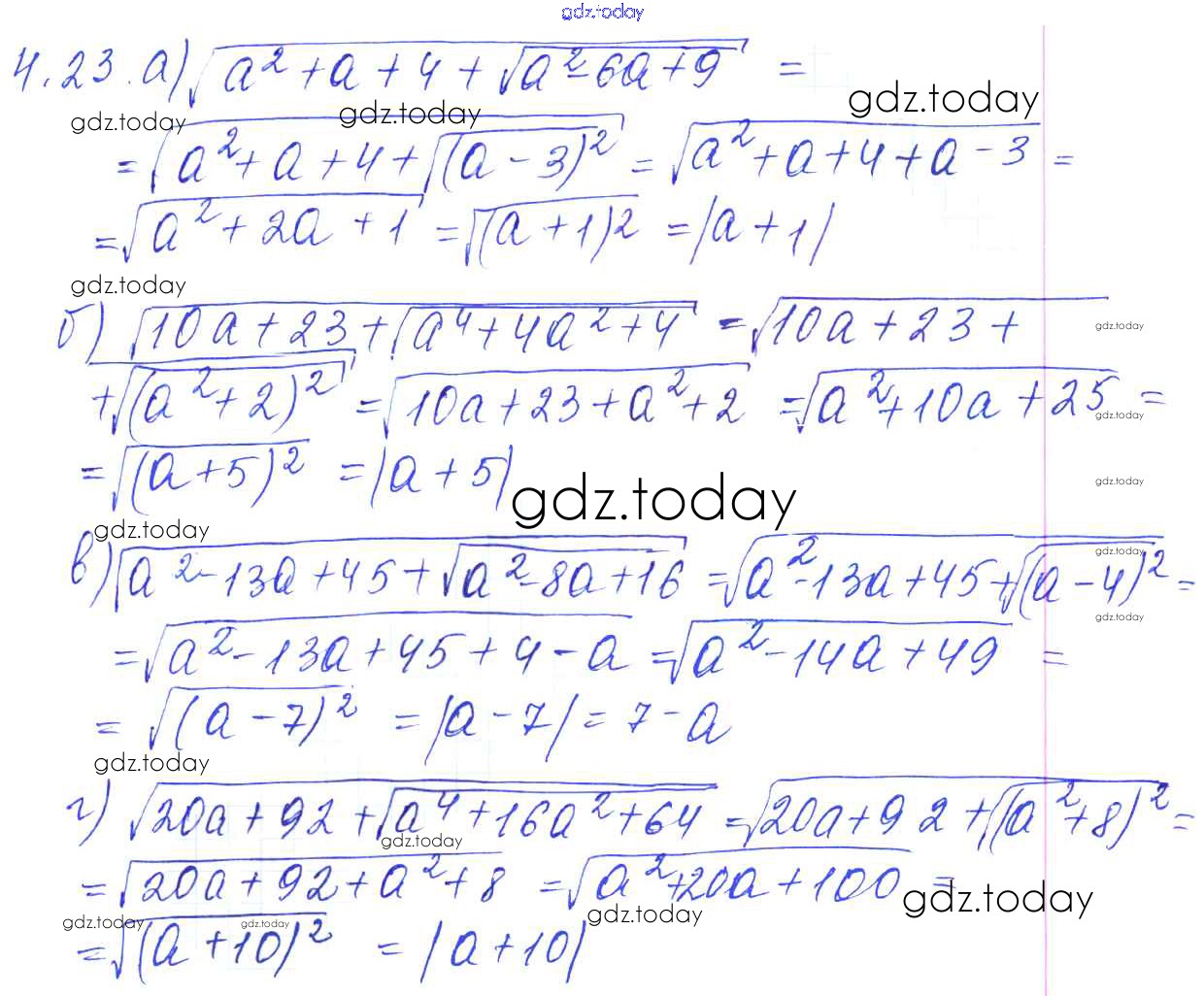 На страницах сайта gdz.today вы найдете учебный и вспомогательный материал, направленный на улучшения знаний школьной программы. ГДЗ - онлайн мир знаний Решение к параграфам 4. Квадратные корни 4.23 Сборнику задач по Алгебре для 8 класса Галицкий, Гольдман Просвещение 2019