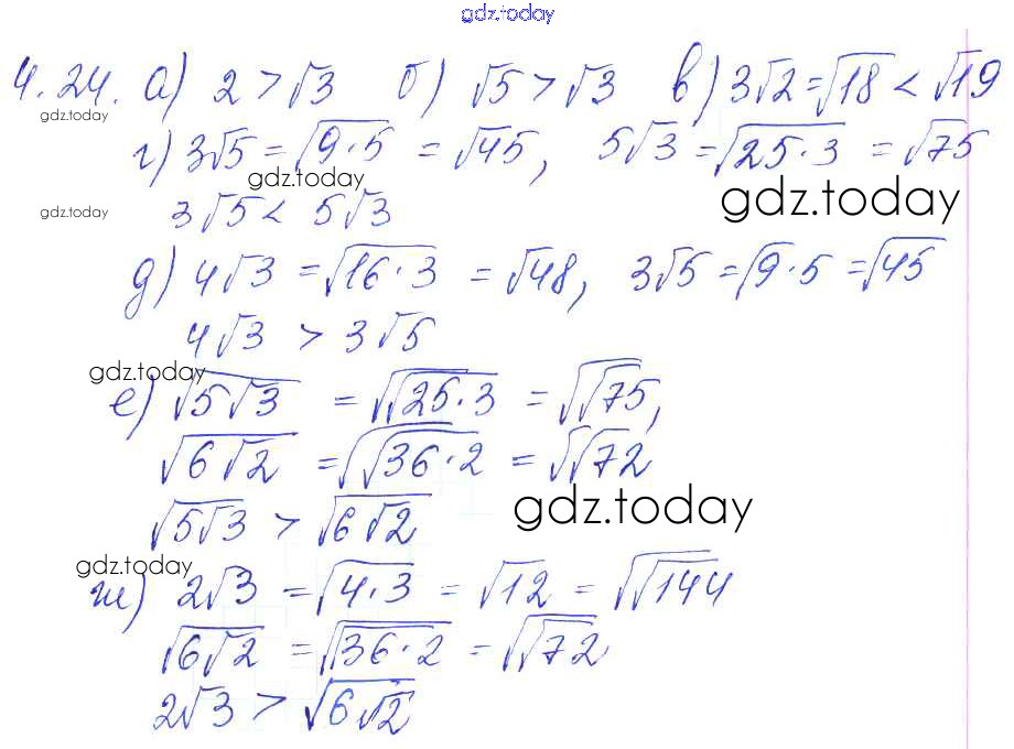 На страницах сайта gdz.today вы найдете учебный и вспомогательный материал, направленный на улучшения знаний школьной программы. ГДЗ - онлайн мир знаний Решение к параграфам 4. Квадратные корни 4.24 Сборнику задач по Алгебре для 8 класса Галицкий, Гольдман Просвещение 2019