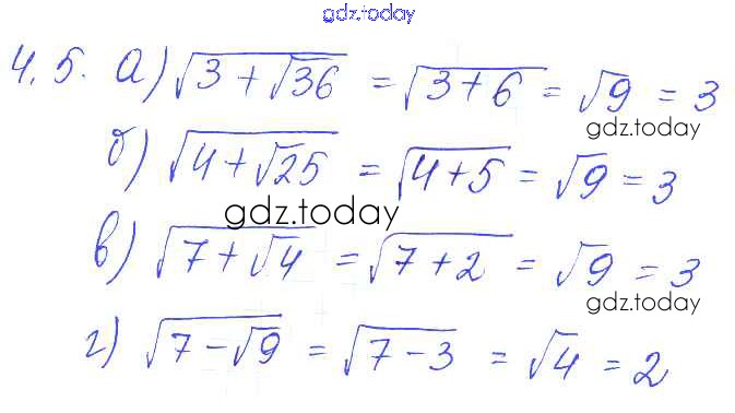 На страницах сайта gdz.today вы найдете учебный и вспомогательный материал, направленный на улучшения знаний школьной программы. ГДЗ - онлайн мир знаний Решение к параграфам 4. Квадратные корни 4.5 Сборнику задач по Алгебре для 8 класса Галицкий, Гольдман Просвещение 2019