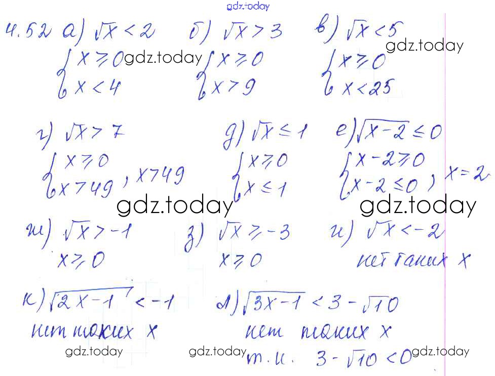 Ответы к Решение к параграфам 4. Квадратные корни 4.52 Сборнику задач по Алгебре для 8 класса Галицкий, Гольдман Просвещение 2019