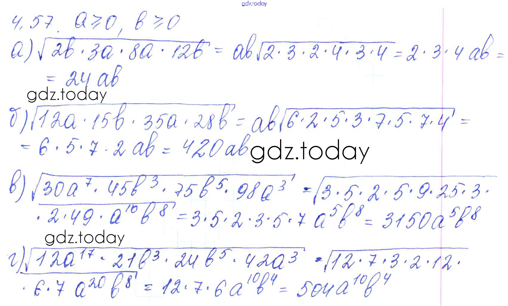 Ответы к Решение к параграфам 4. Квадратные корни 4.57 Сборнику задач по Алгебре для 8 класса Галицкий, Гольдман Просвещение 2019