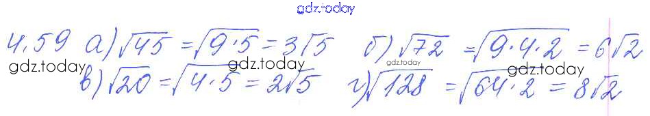 На страницах сайта gdz.today вы найдете учебный и вспомогательный материал, направленный на улучшения знаний школьной программы. ГДЗ - онлайн мир знаний Решение к параграфам 4. Квадратные корни 4.59 Сборнику задач по Алгебре для 8 класса Галицкий, Гольдман Просвещение 2019