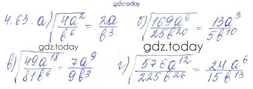 Ответы к Решение к параграфам 4. Квадратные корни 4.63 Сборнику задач по Алгебре для 8 класса Галицкий, Гольдман Просвещение 2019