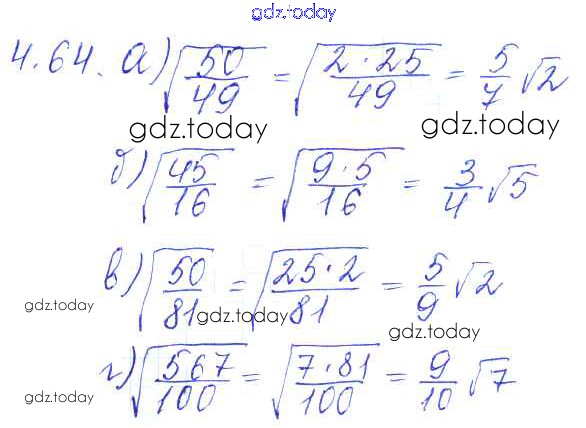 Ответы к Решение к параграфам 4. Квадратные корни 4.64 Сборнику задач по Алгебре для 8 класса Галицкий, Гольдман Просвещение 2019