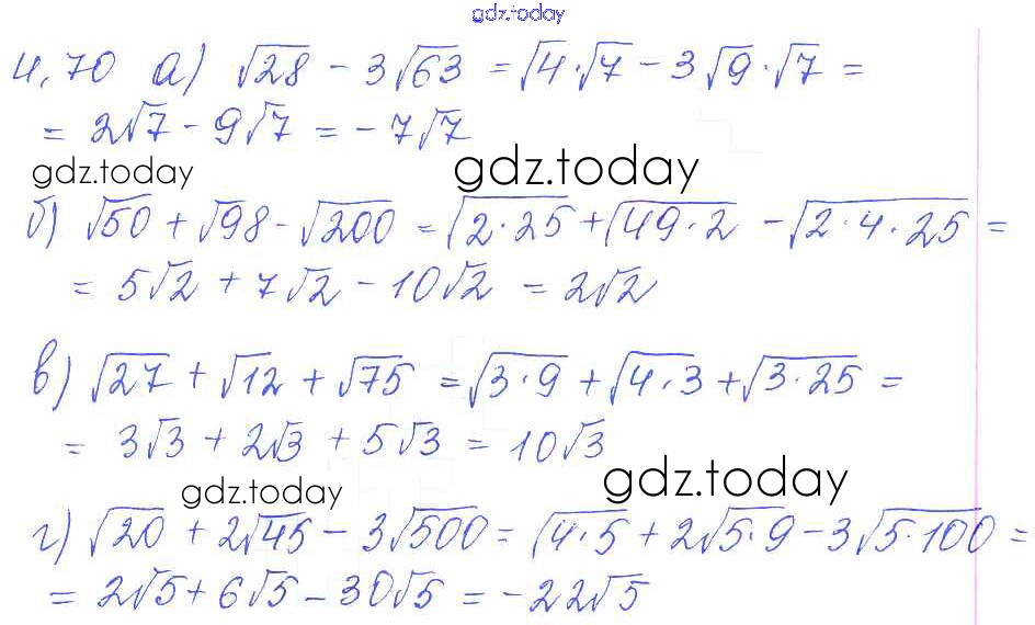 На страницах сайта gdz.today вы найдете учебный и вспомогательный материал, направленный на улучшения знаний школьной программы. ГДЗ - онлайн мир знаний Решение к параграфам 4. Квадратные корни 4.70 Сборнику задач по Алгебре для 8 класса Галицкий, Гольдман Просвещение 2019