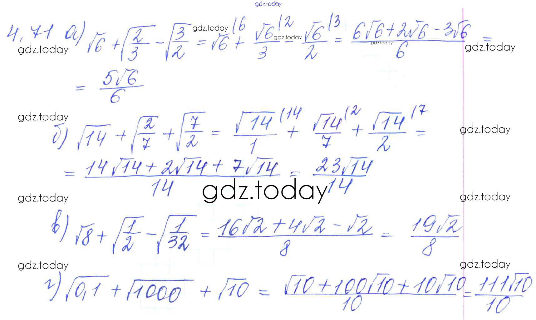 На страницах сайта gdz.today вы найдете учебный и вспомогательный материал, направленный на улучшения знаний школьной программы. ГДЗ - онлайн мир знаний Решение к параграфам 4. Квадратные корни 4.71 Сборнику задач по Алгебре для 8 класса Галицкий, Гольдман Просвещение 2019