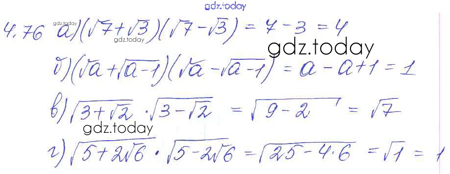 На страницах сайта gdz.today вы найдете учебный и вспомогательный материал, направленный на улучшения знаний школьной программы. ГДЗ - онлайн мир знаний Решение к параграфам 4. Квадратные корни 4.76 Сборнику задач по Алгебре для 8 класса Галицкий, Гольдман Просвещение 2019