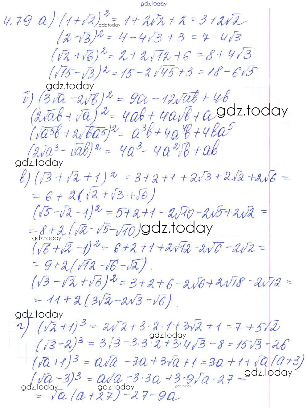 Ответы к Решение к параграфам 4. Квадратные корни 4.79 Сборнику задач по Алгебре для 8 класса Галицкий, Гольдман Просвещение 2019