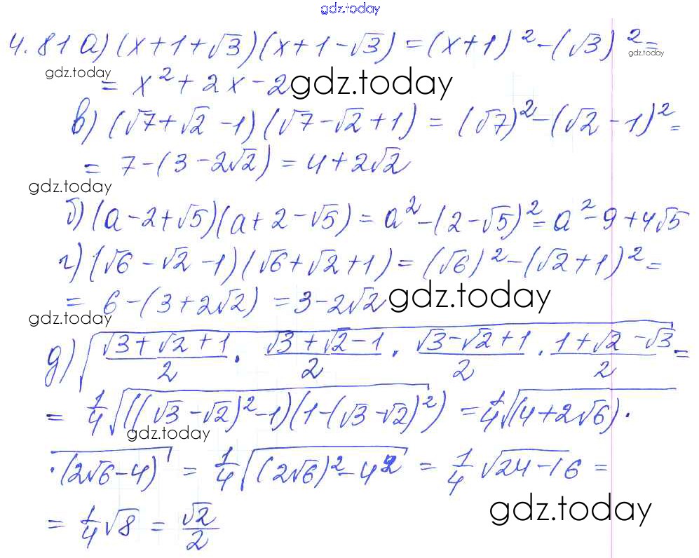 Ответы к Решение к параграфам 4. Квадратные корни 4.81 Сборнику задач по Алгебре для 8 класса Галицкий, Гольдман Просвещение 2019